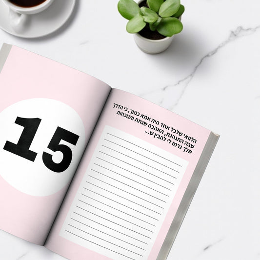 היומן לא דורש "משמעת כתיבה" או ניסיון קודם – הוא פשוט מזמין לעצור לרגע, להיזכר, ולכתוב בקצב שלך, בלי לחץ ועם הרבה נחת.
